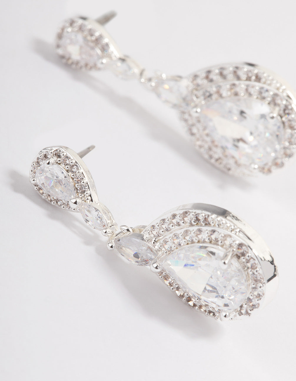 Silver Plated Cubic Zirconia Marquise Drop Earrings