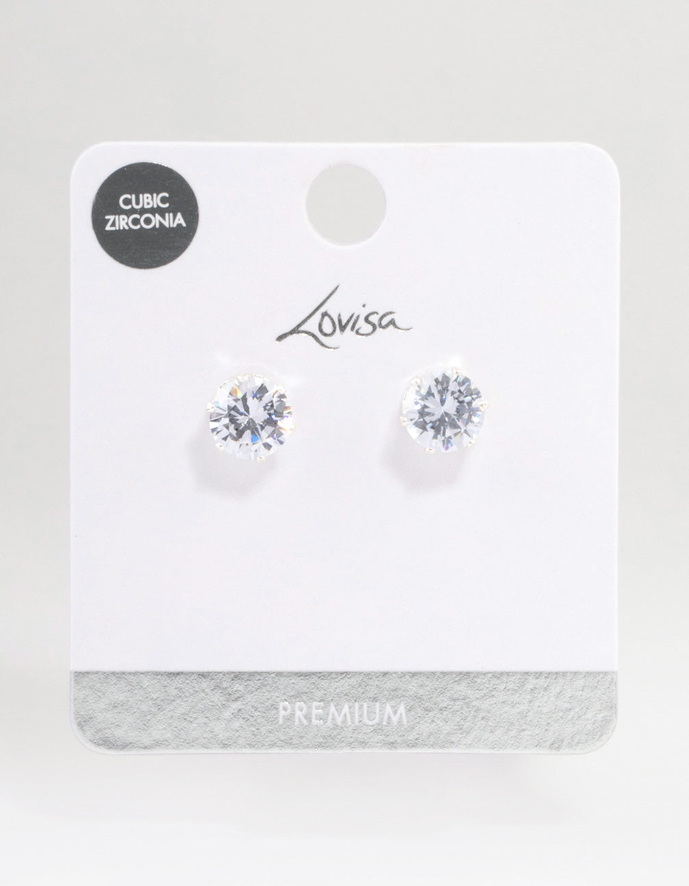 Silver Plated Cubic Zirconia Round Plain Stud Earrings