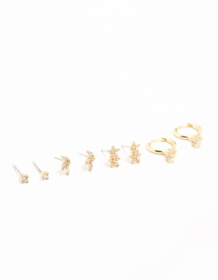 Gold Plated Brass Cubic Zirconia Flower Earrings 4-Pack