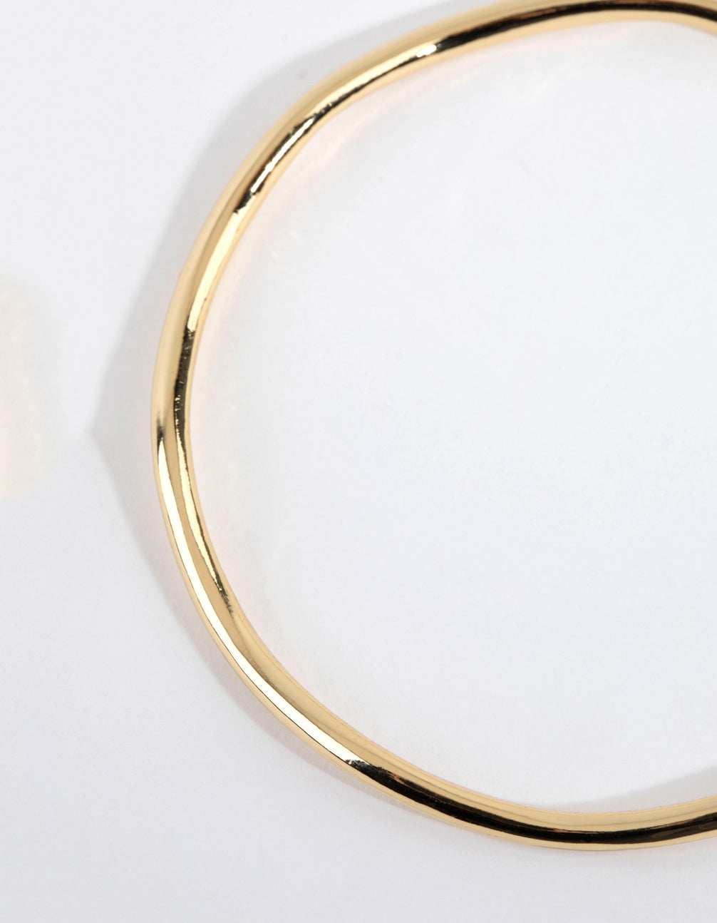 This beautiful bangle is plated with genuine gold for authentic lustre and shine. It features a timeless curved design. Layer this classic piece with other bangles for maxium effect.