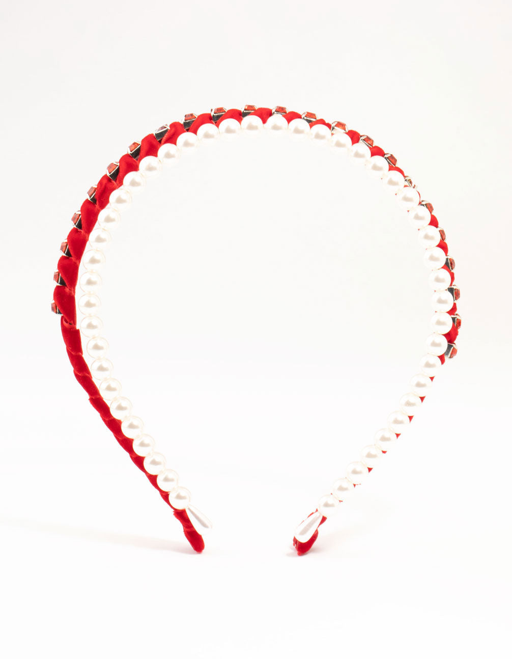 Get into the holiday spirit with this fabulous headband. Featuring vibrant red tones, sparkling diamante crystals, and elegant pearls, this headband will give you a chic and festive look that's sure to turn heads.