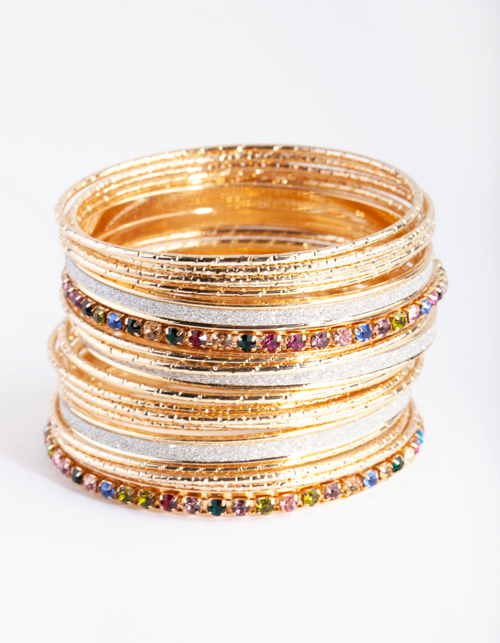 • Gold Multi Stone Cupchain & Glitter Bangle 20-Pack - link has visual effect only