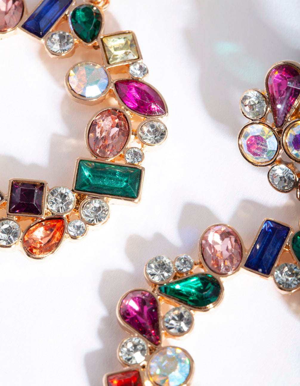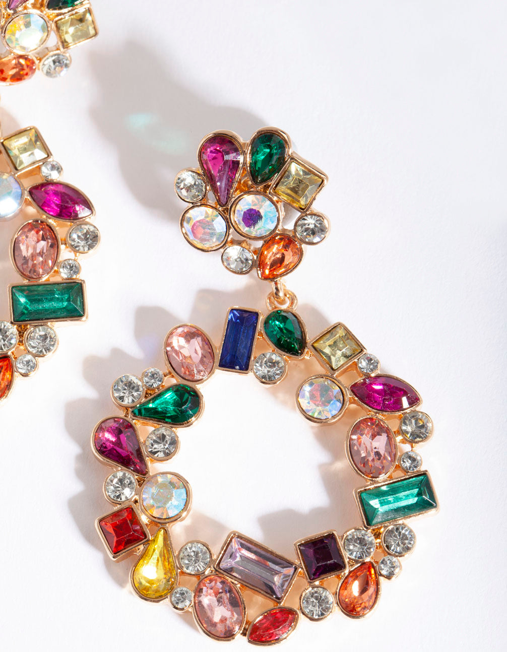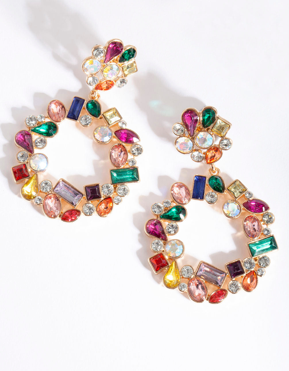 Turn heads with these statement earrings! They're gold toned, and feature a glamorous drop design adorned with multicoloured crystal-like beads.