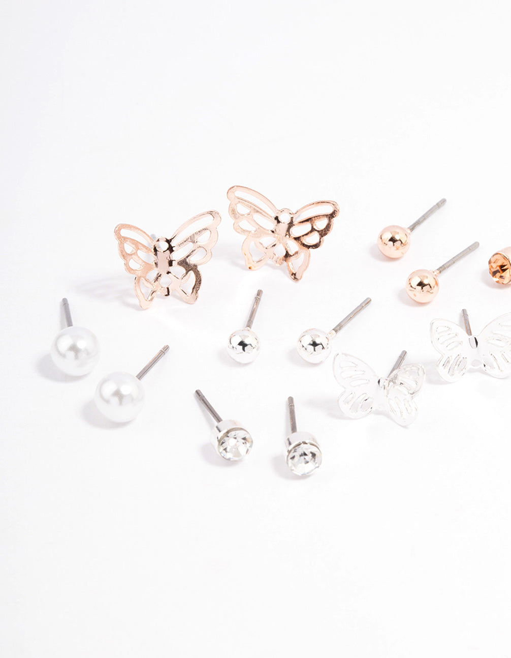 Rose Gold Basic Stud & Butterfly Earrings 8-Pack
