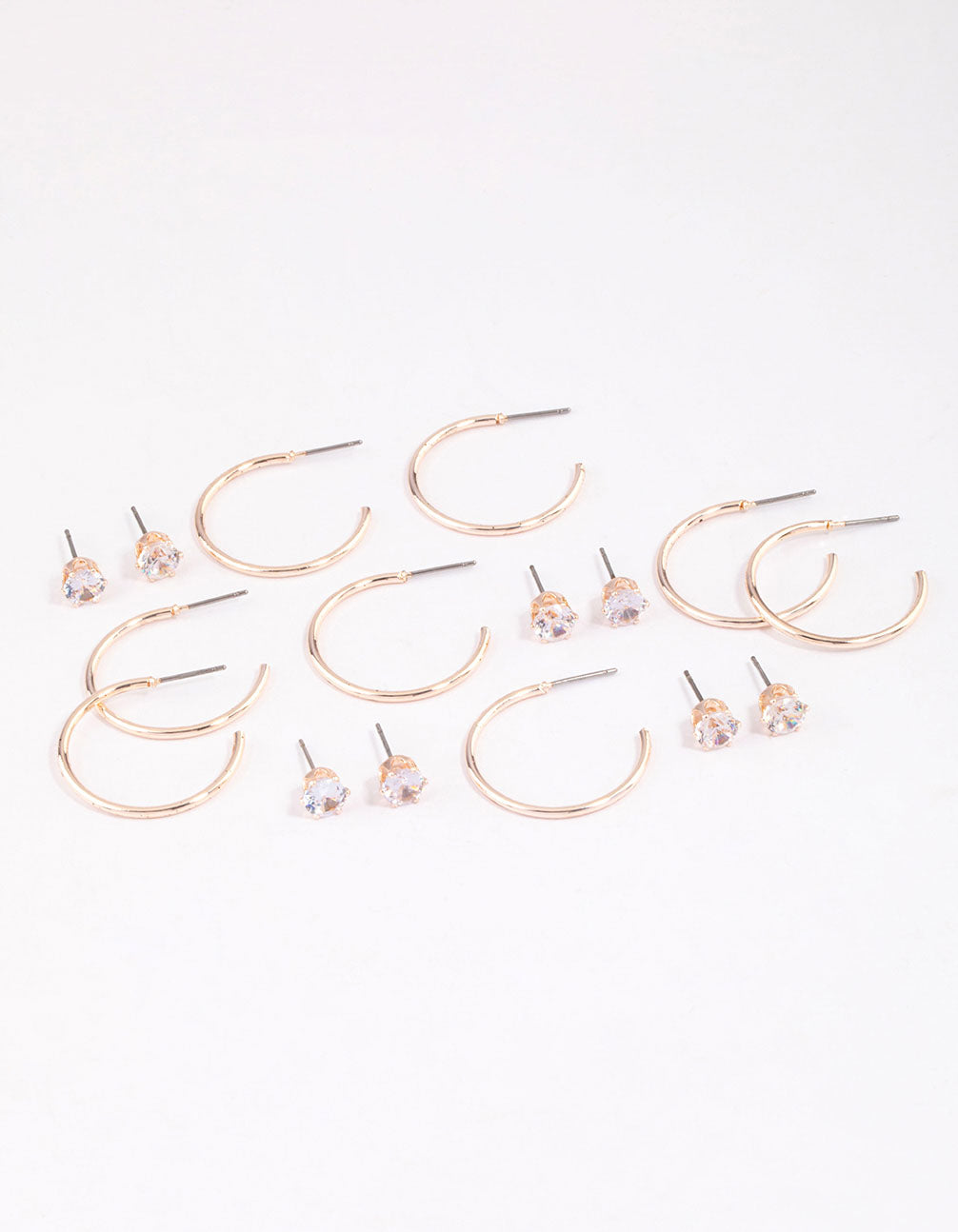Rose Gold Classic Diamante & Hoop Earrings 8-Pack