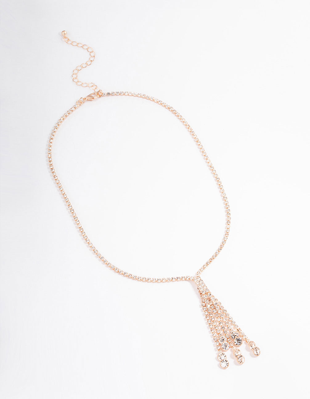 Rose Gold Diamante Tassel Y-Shape Necklace