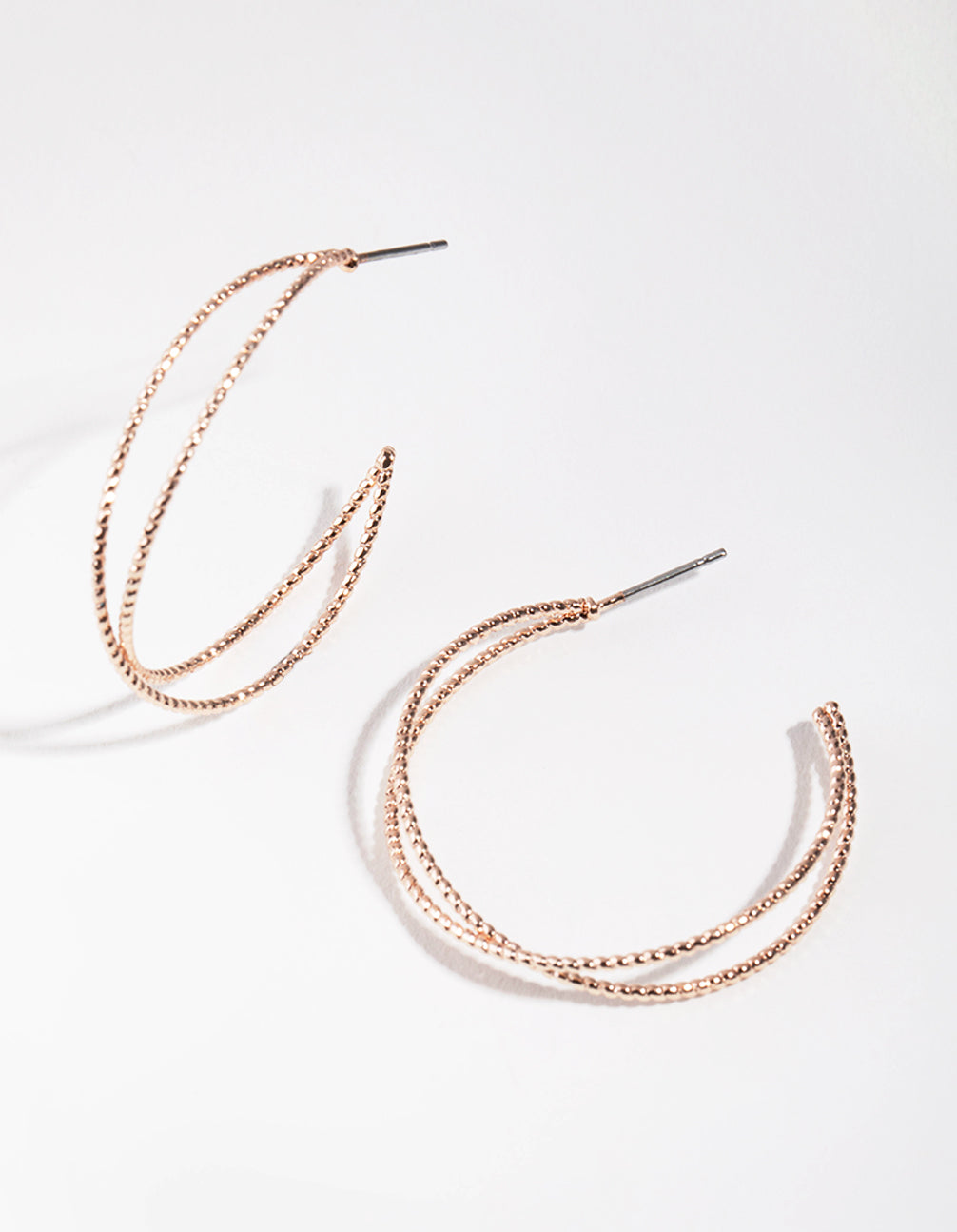 Make the ultimate addition to your collection with some hoops! These earrings feature a unique crossover structure on a rose-gold-toned setting. Wear alone or layer with other pieces for an on-trend ensemble.