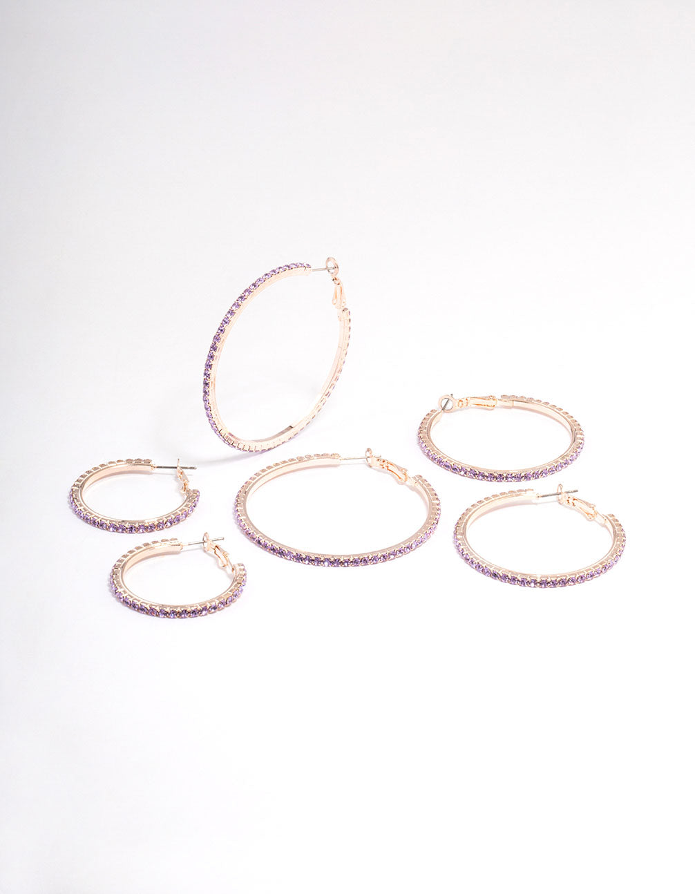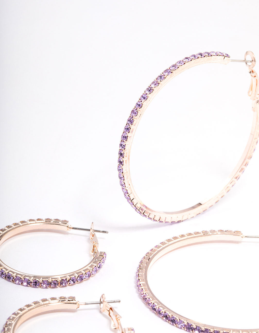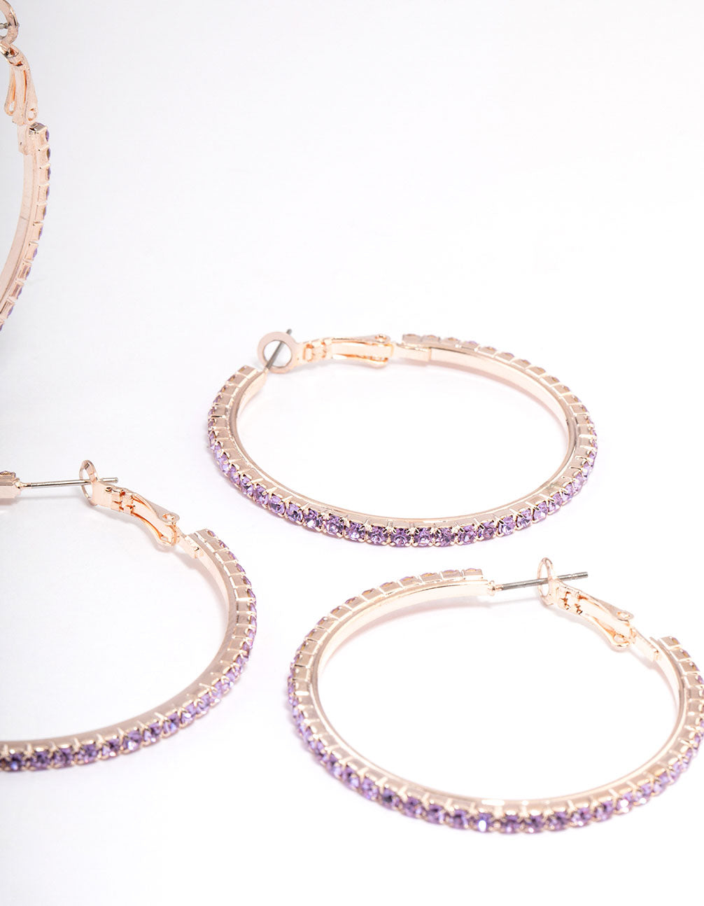 Rose Gold Mixed Size Diamante Hoop Earrings