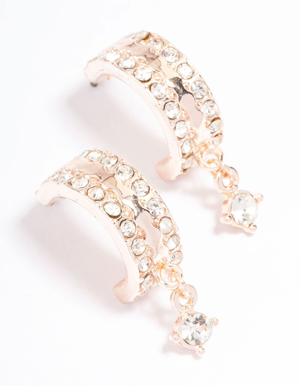 - Style these Rose Gold Thick Mini Stone Hoop Earrings for a touch of sophistication. The earrings showcase thick hoops adorned with mini stones, offering a chic and classic finish to your outfit.