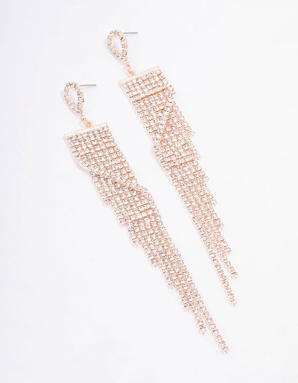 Rose Gold Wrapped Diamante Cup Chain Drop Earrings