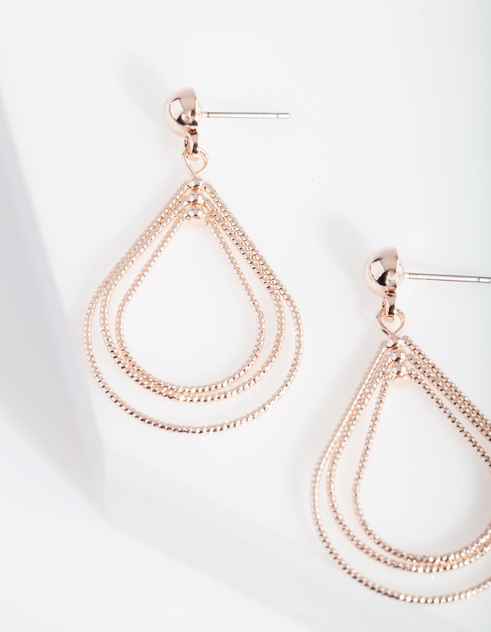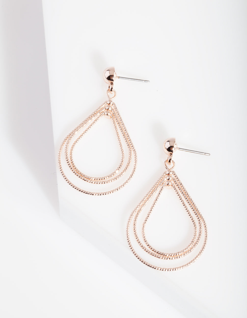 A fun pair of fashion earrings are an easy way to spice up your daily ensembles! This rose-gold-toned style boasts a textured triple loop design.