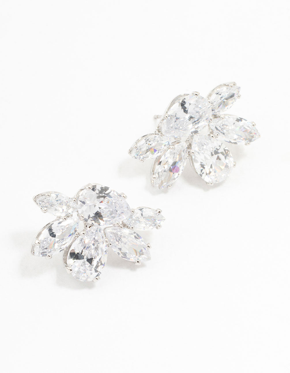 Elevate your style with these stunning silver teardrop cluster studs, adorned with sparkling cubic zirconia. Perfect for adding glamour and catching eyes with their dazzling cluster design, they're ideal for enhancing any outfit with flair.