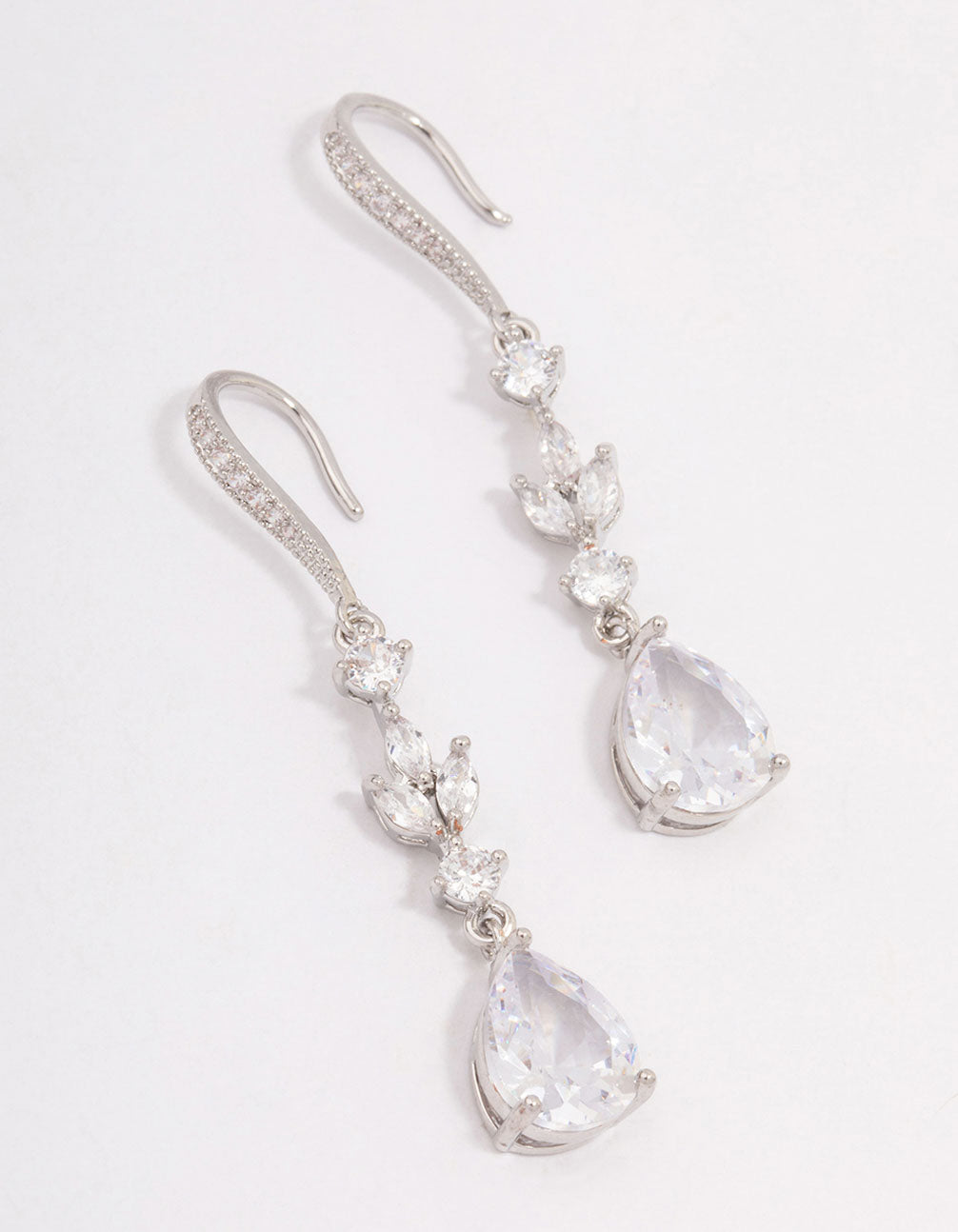 Silver Cubic Zirconia French Hook Pear Drop Earrings