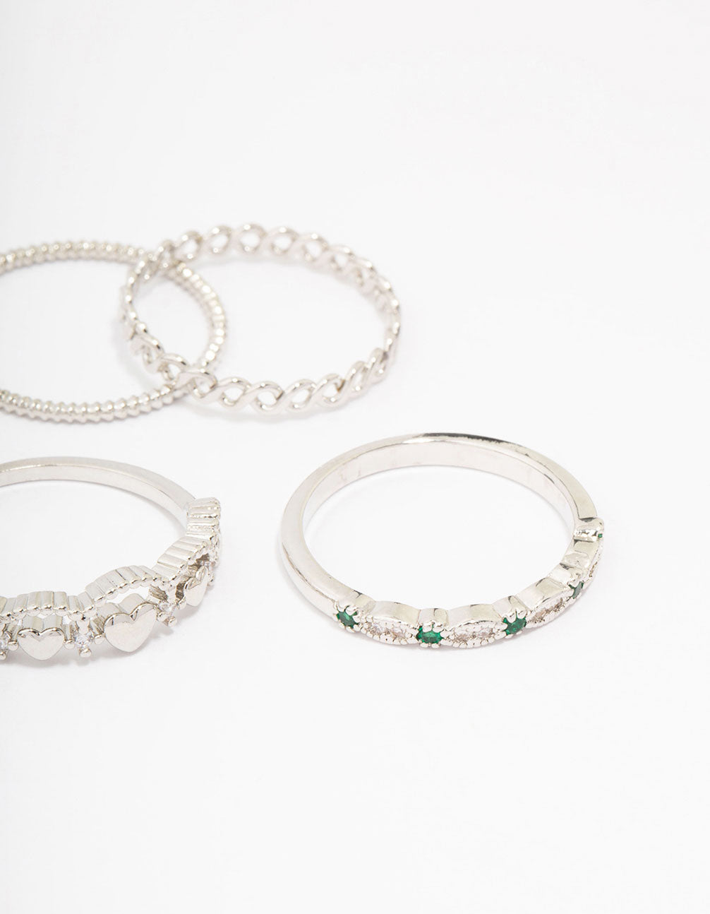 Silver Cubic Zirconia Heart Ring 5-Pack
