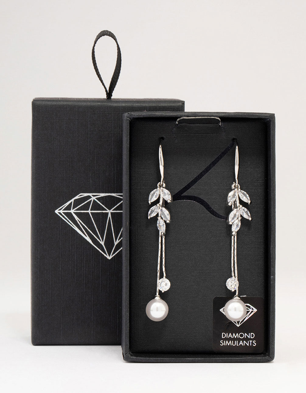 Silver Cubic Zirconia Leaf & Pearl Drop Earrings
