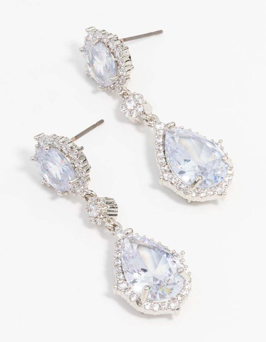 These beautiful drop earrings features dazzling cubic zirconia crystals for a glamorous and eye-catching look. These earrings are perfect for dressy occasions and the double drop design elegantly frames the face.