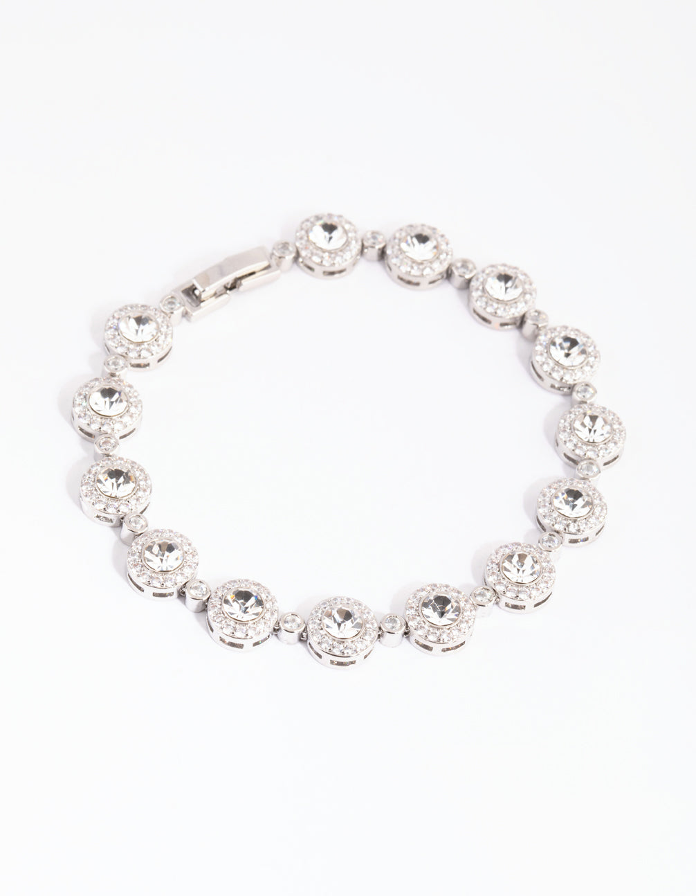 Dazzle with diamond simulants! These lab-created crystals are designed to closely replicate true diamonds. This opulent piece features a stunning diamond-simulant embellished design. Wear it for a formal finishing touch.