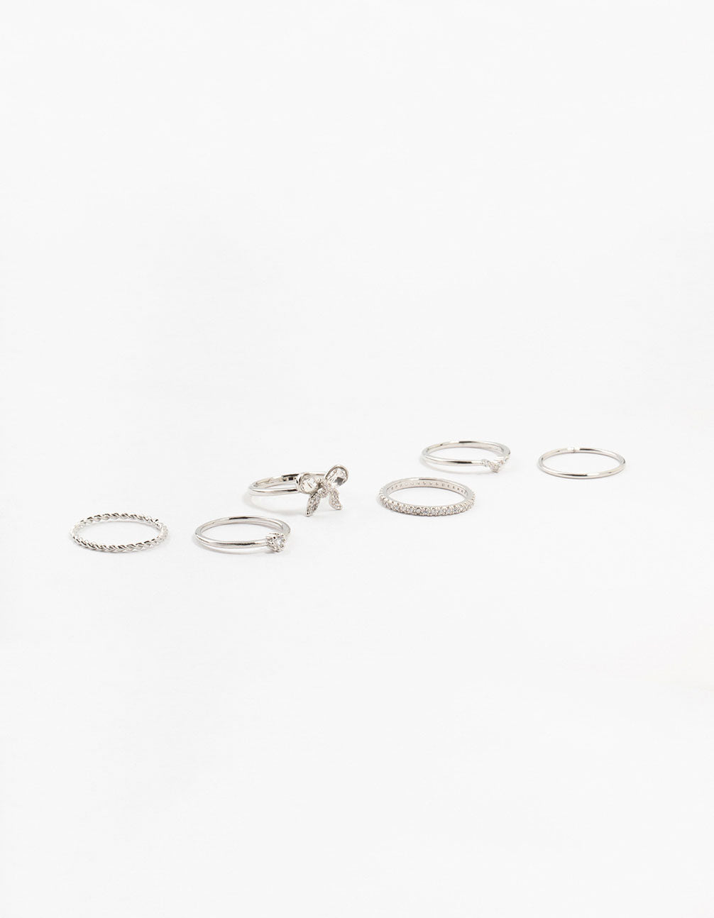 Silver Mixed Bow Cubic Zirconia Rings 6-Pack