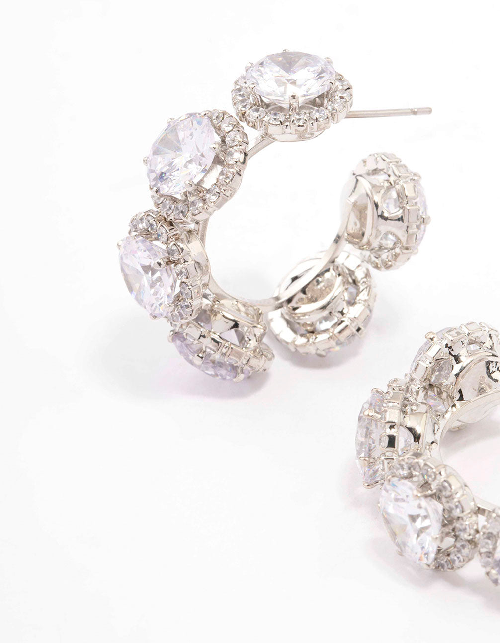 Silver Round Cubic Zirconia Small Hoop Earrings