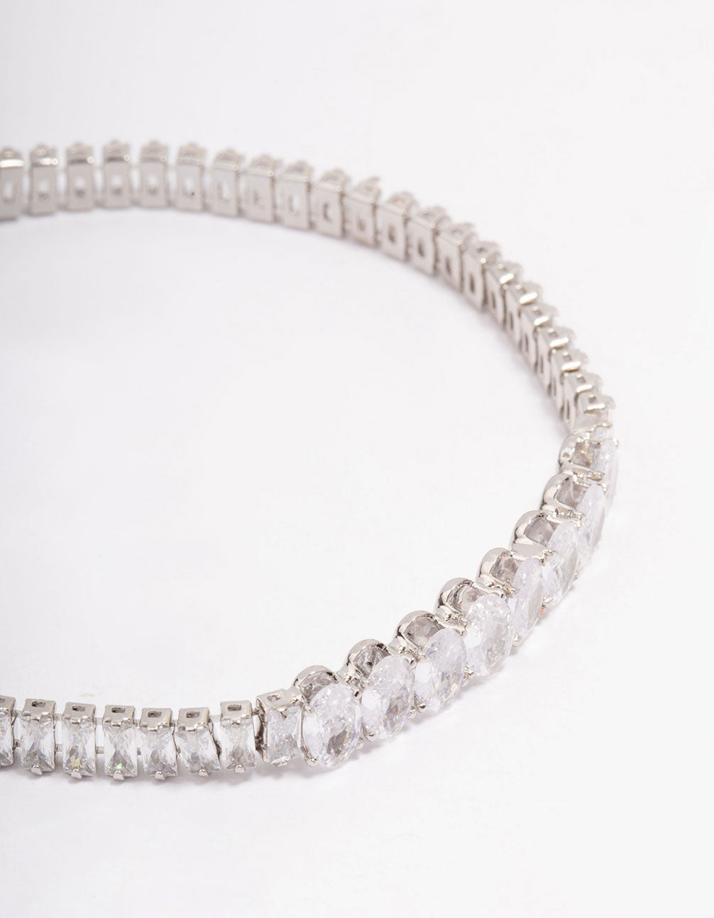 Silver Round Emerald-Cut Rectangular Tennis Bracelet