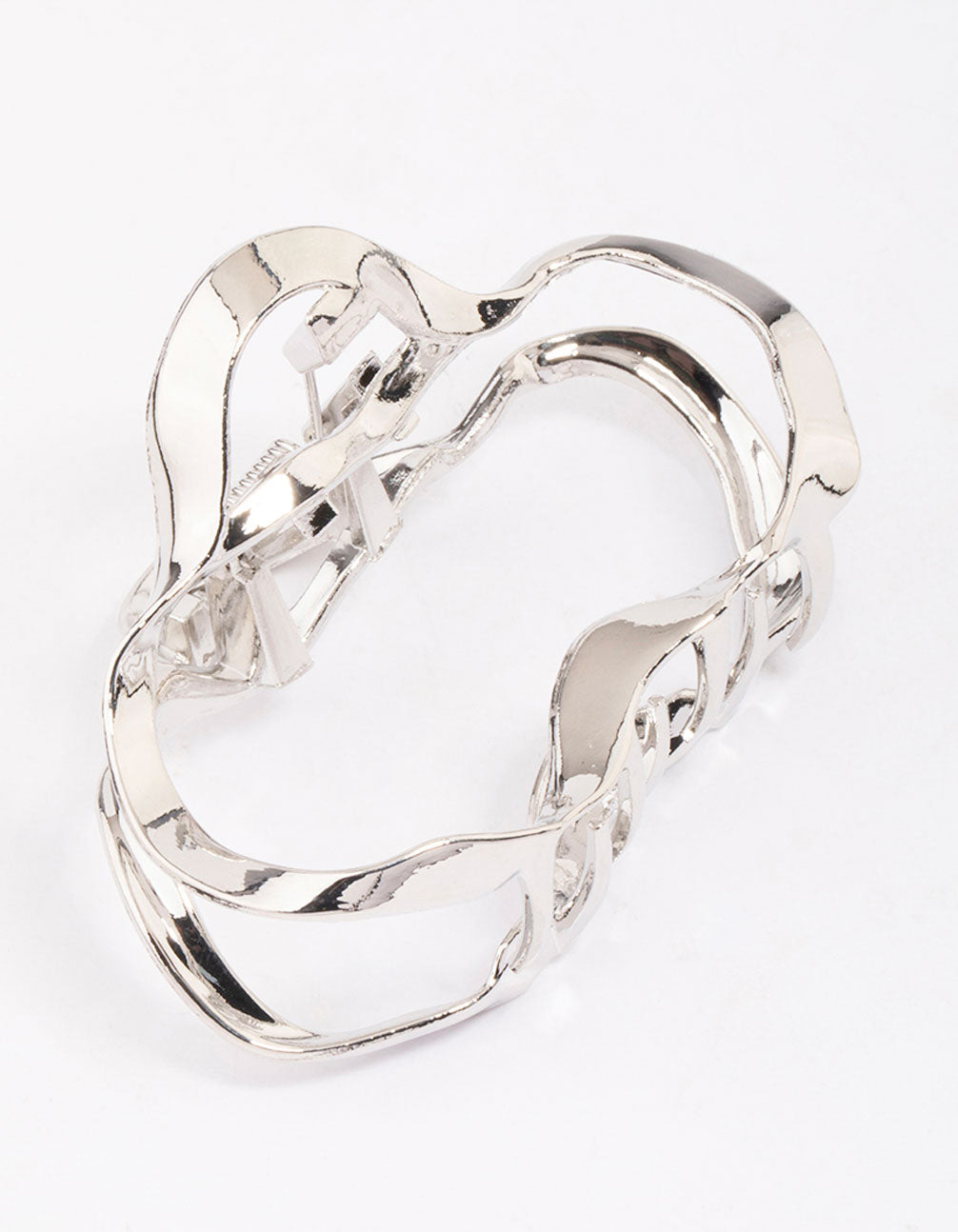 Add a modern touch to your look with this silver-toned hair claw. This claw clips features a shiny silver-toned setting and wavy, oval-shaped design. Perfect for adding interest to your everyday hairstyles!
