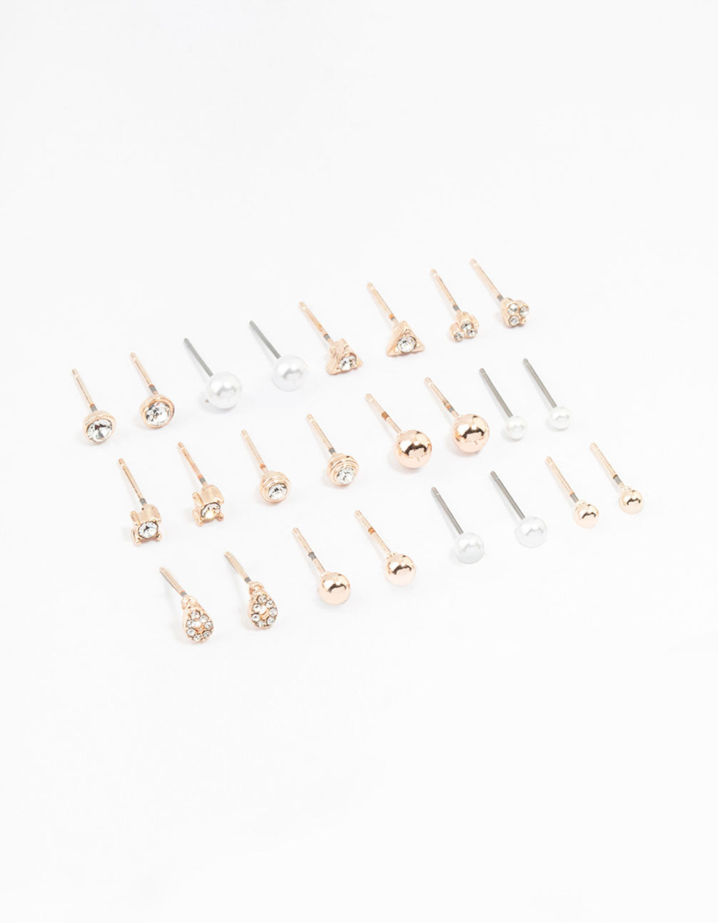 Rose Gold Classic Pearl & Stone Earrings 12-Pack