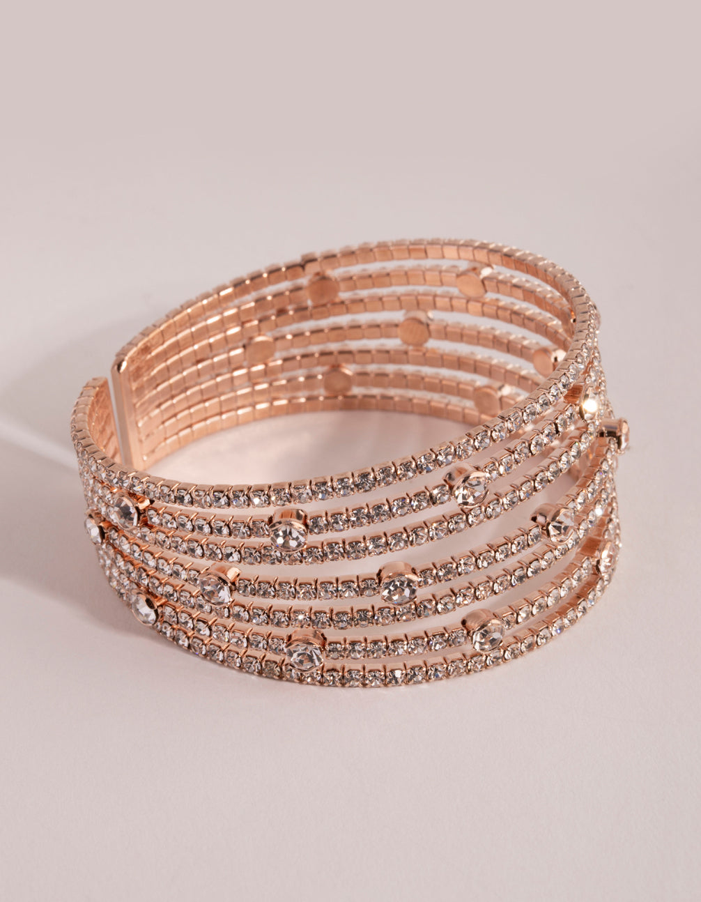 Rose Gold Diamante Multi Row Cuff Bracelet