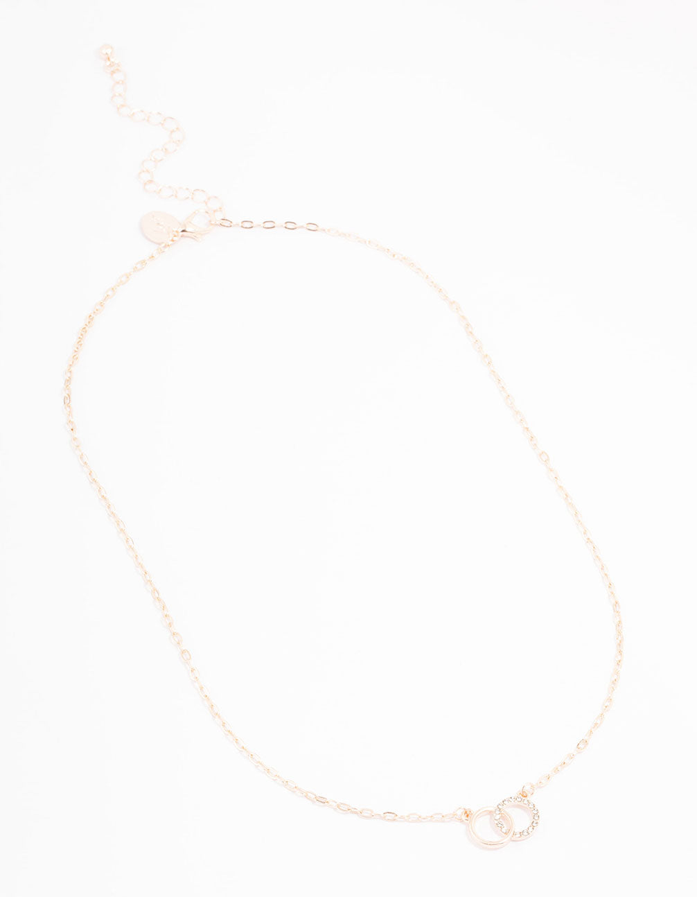 Rose Gold Interlocking Circular Diamante Pendant Necklace