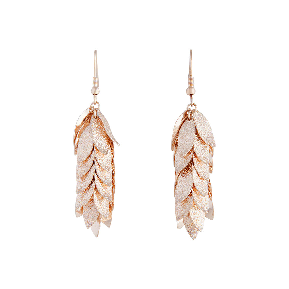 These earrings boast a layered leaf design in a stunning rose gold tone.
