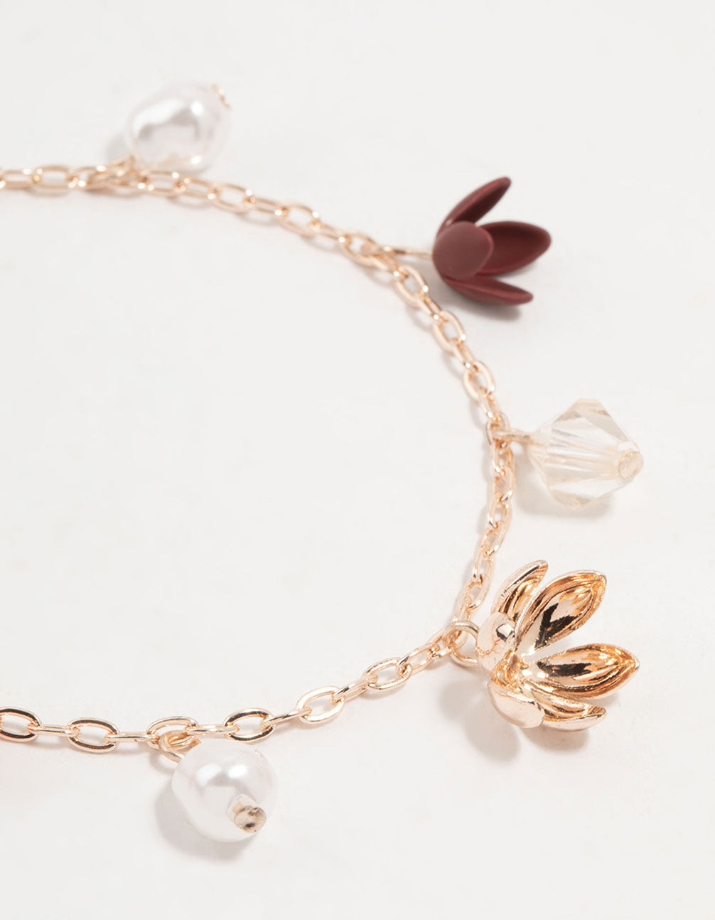 Rose Gold Mixed Flower Charm Bracelet Rose Gold Mixed Flower Charm Bracelet Rose Gold Mixed Flower Charm Bracelet
