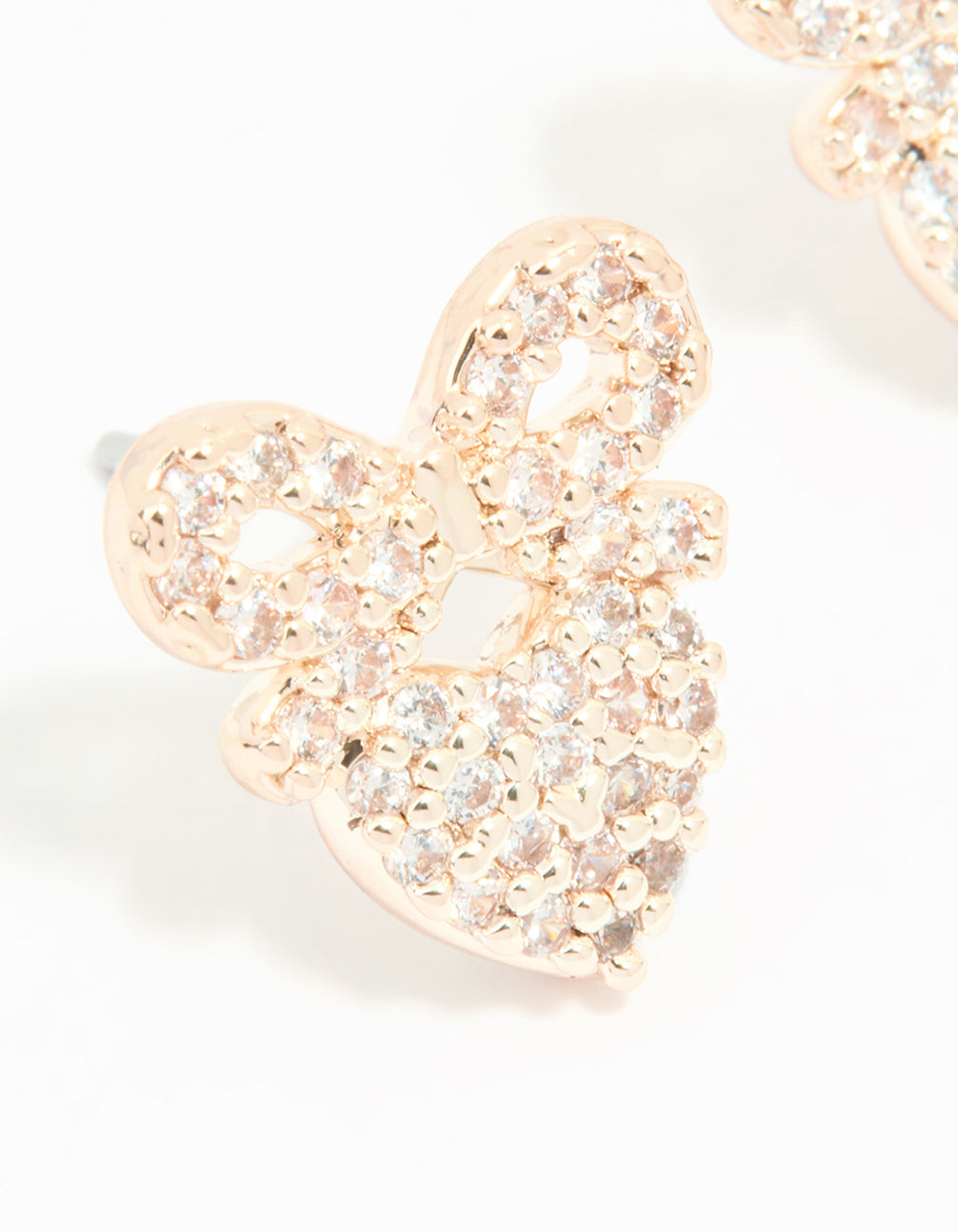 Rose Gold Plated Cubic Zirconia Bow & Heart Stud Earrings