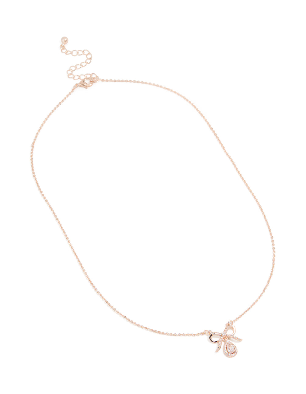 Rose Gold Plated Cubic Zirconia Bow Pendant Necklace