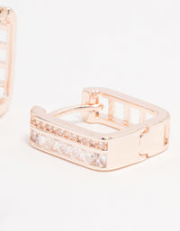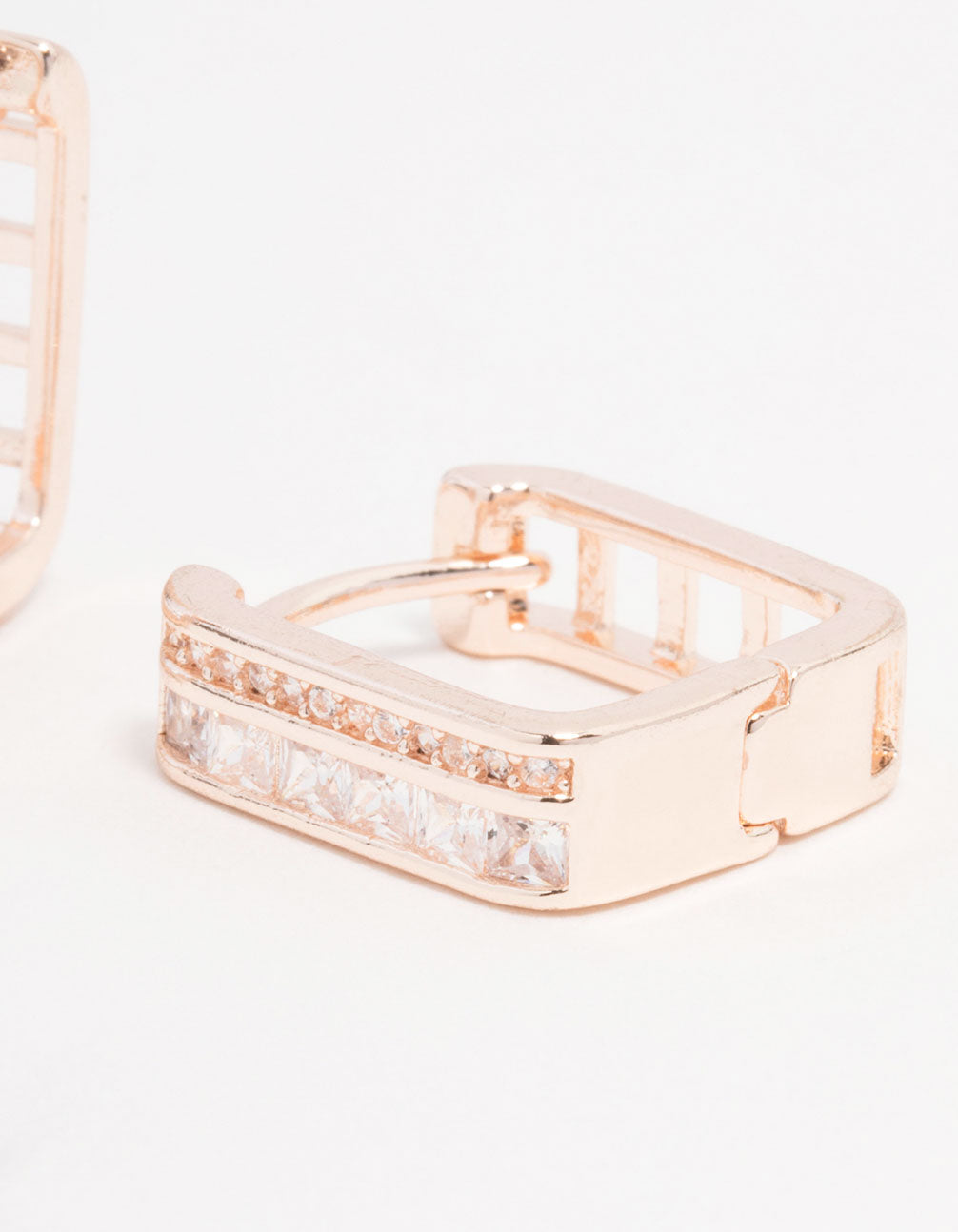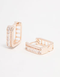 Rose Gold Plated Cubic Zirconia Double Pave Hoop Earrings