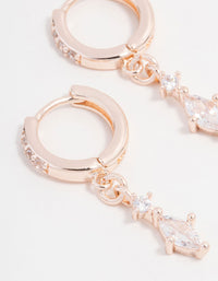 Rose Gold Plated Cubic Zirconia Marquise Huggie Drop Earrings