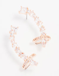 Rose Gold Plated Cubic Zirconia Oval & Square Ear Crawler Cuff Earrings