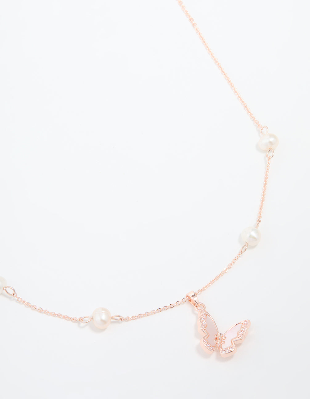 • Rose Gold Plated Cubic Zirconia Pearl Butterfly Necklace - link has visual effect only