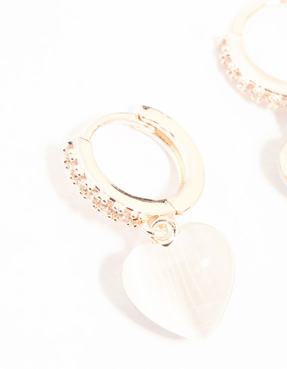 Rose Gold Plated Heart Drop Pave Set Diamante Hoop Earrings