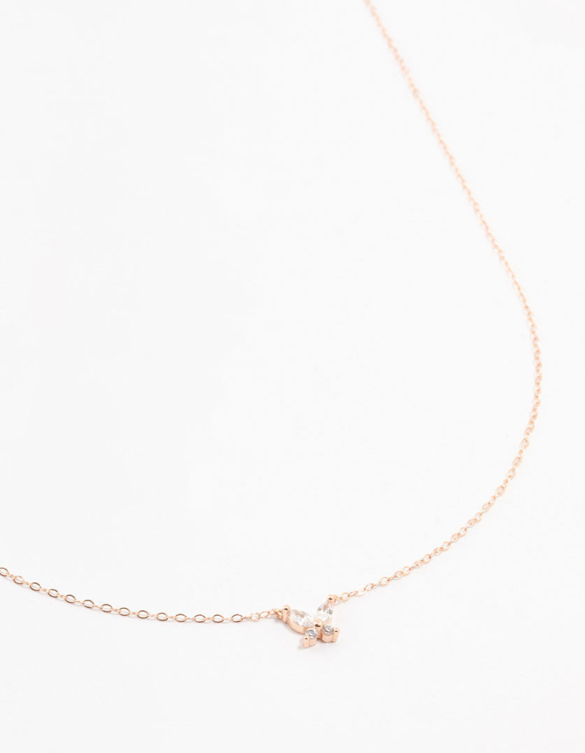 Rose Gold Plated Sterling Silver Cubic Zirconia Mini Butterfly Necklace