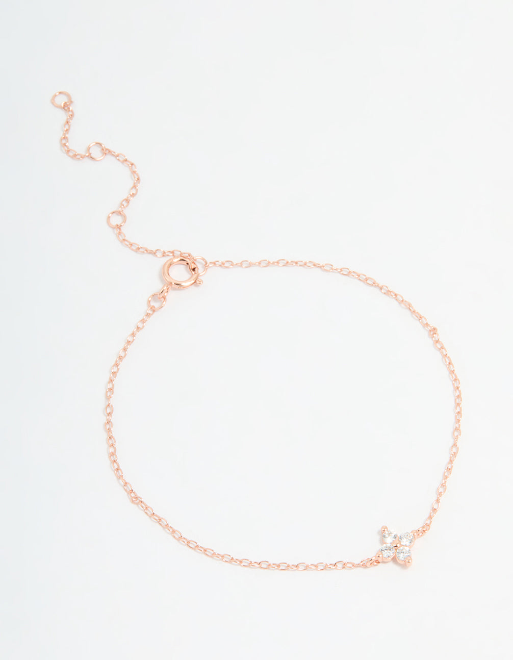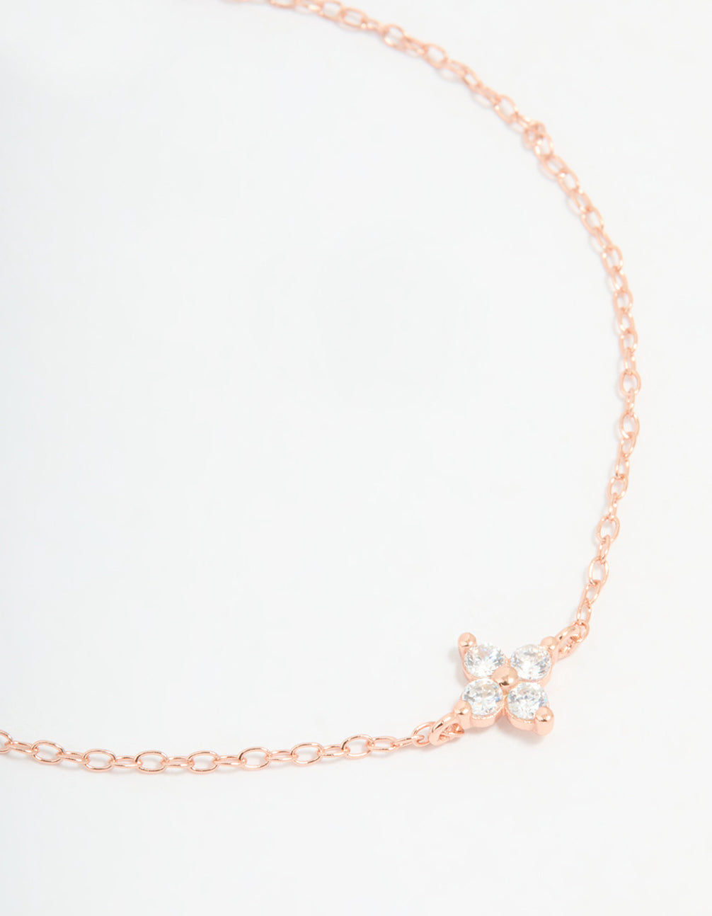 Rose Gold Plated Sterling Silver Cubic Zirconia Tiny Flower Bracelet