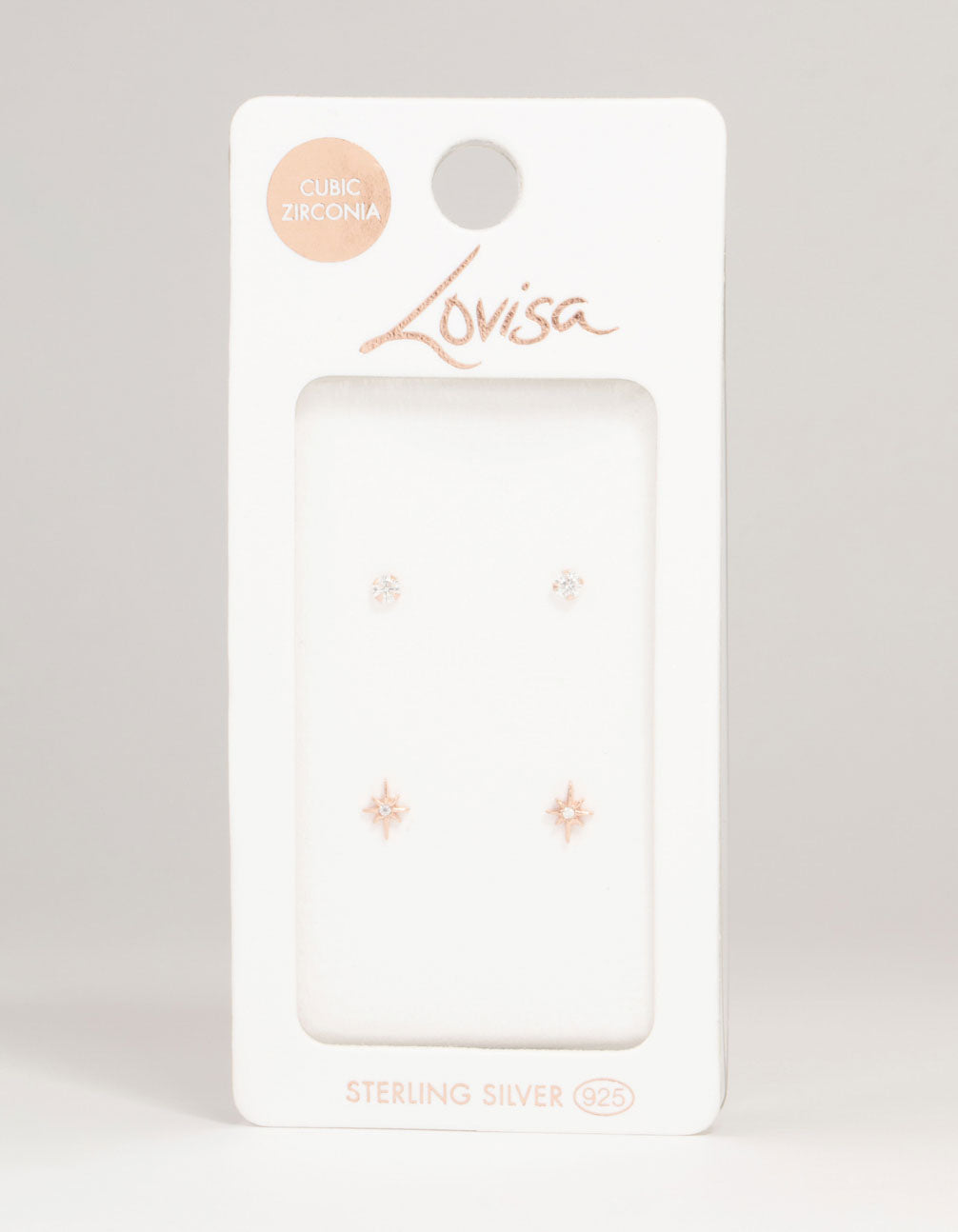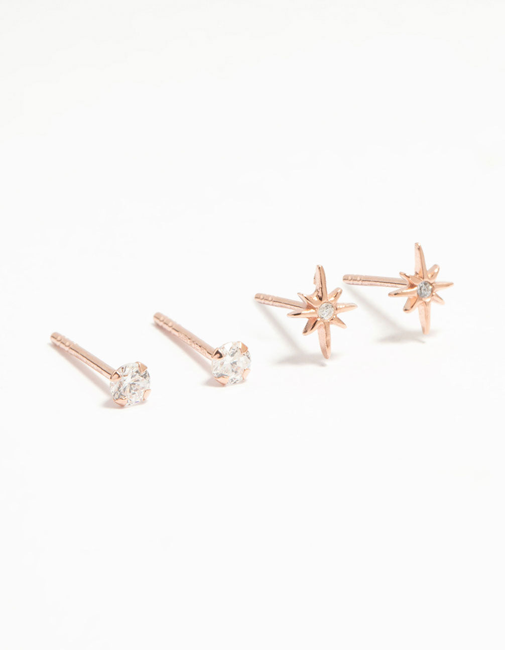 Add celestial charm with our Rose Gold Plated Sterling Silver earrings pack! This pack features one pair of diamante studs and one pair of delicate diamante starburst studs. Perfect for some sparkly celestial style.