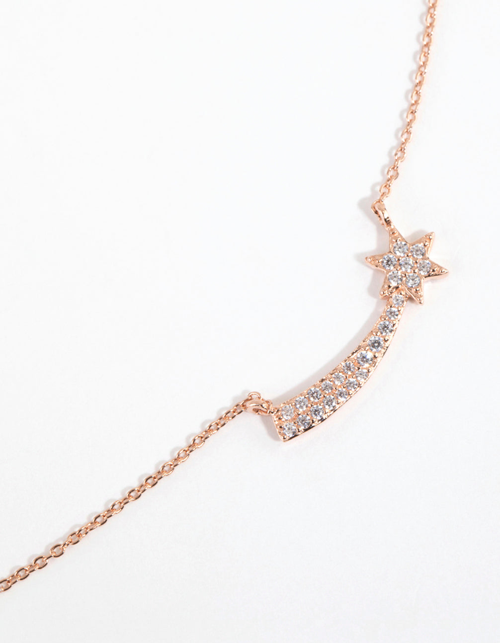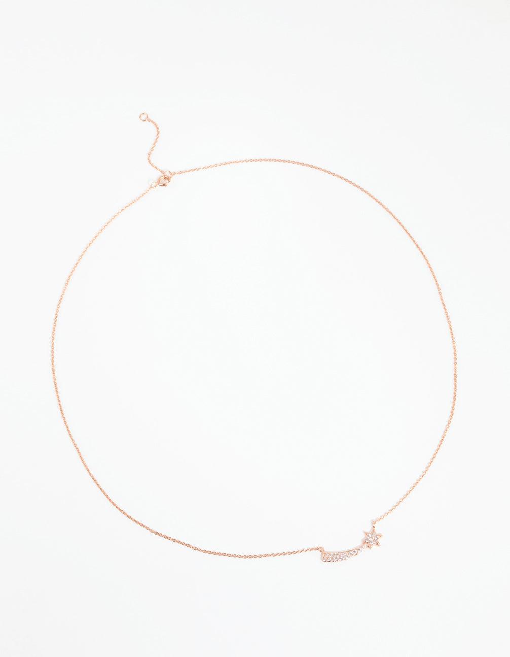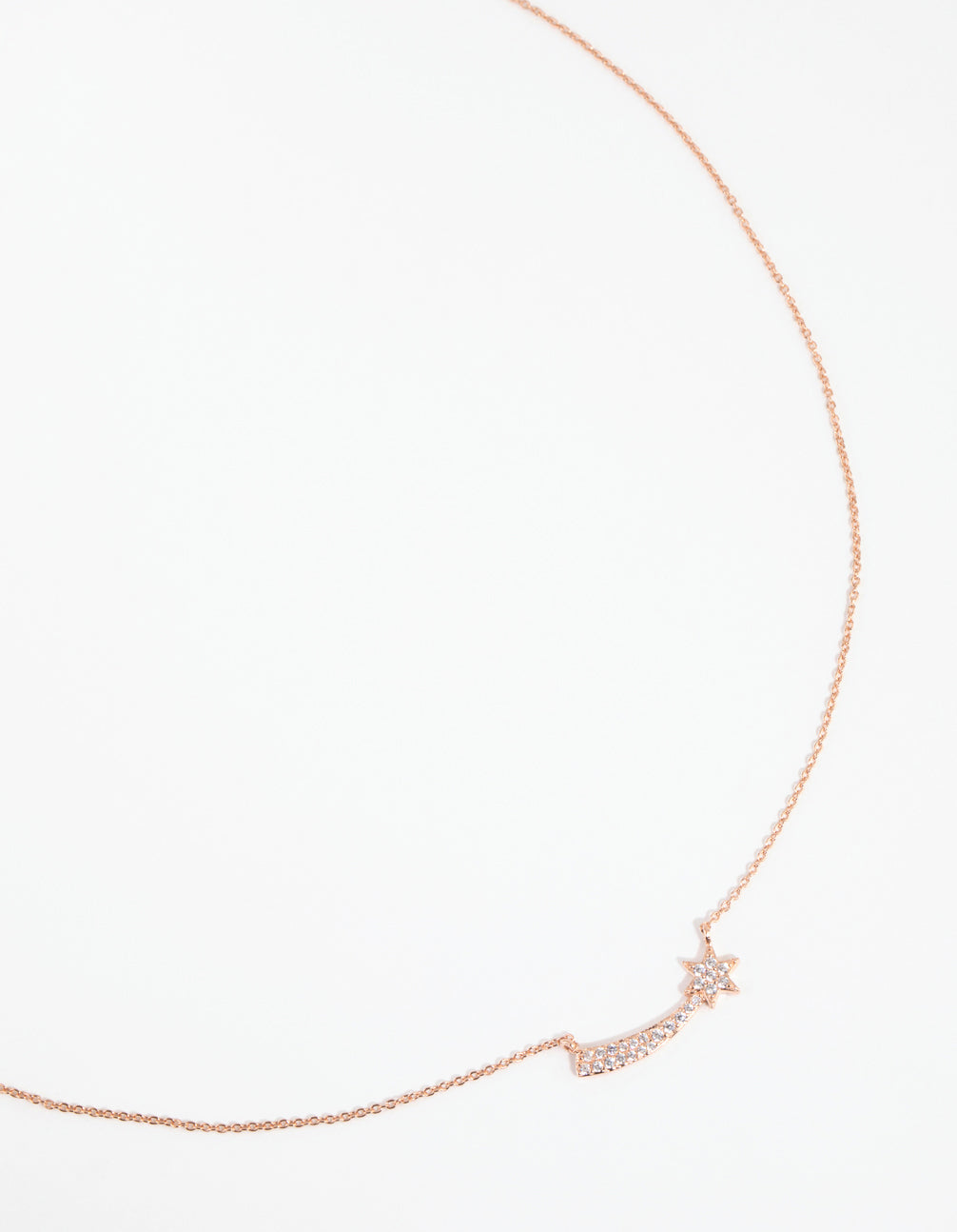 Rose Gold Plated Sterling Silver Cubic Zirconia Shooting Star Necklace