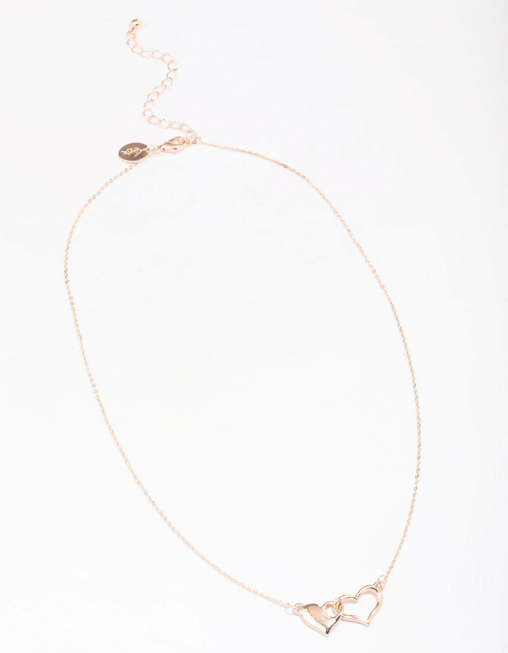 Rose Gold Solid Interlocking Heart Pendant Necklace