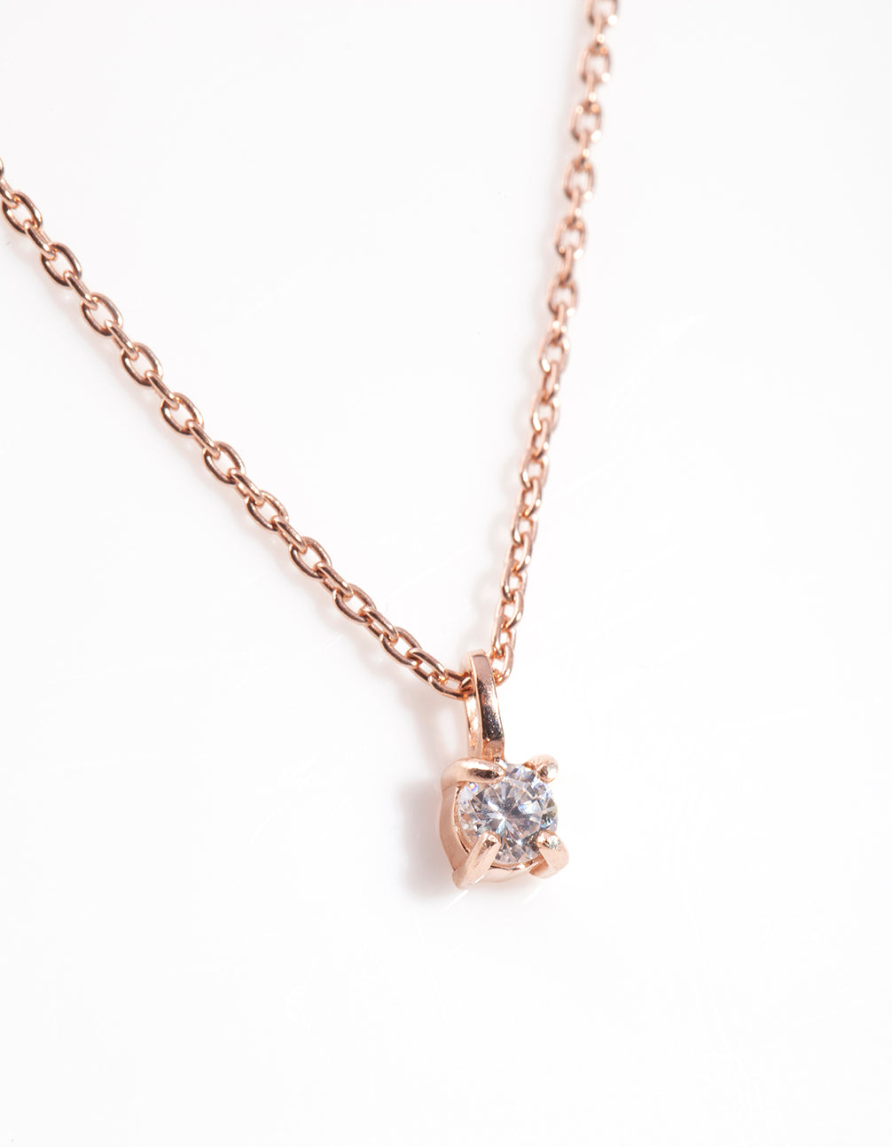 Rose gold plated sterling silver styles add a feminine touch to your everyday looks. This necklace features a cubic zirconia stone for extra sparkle.