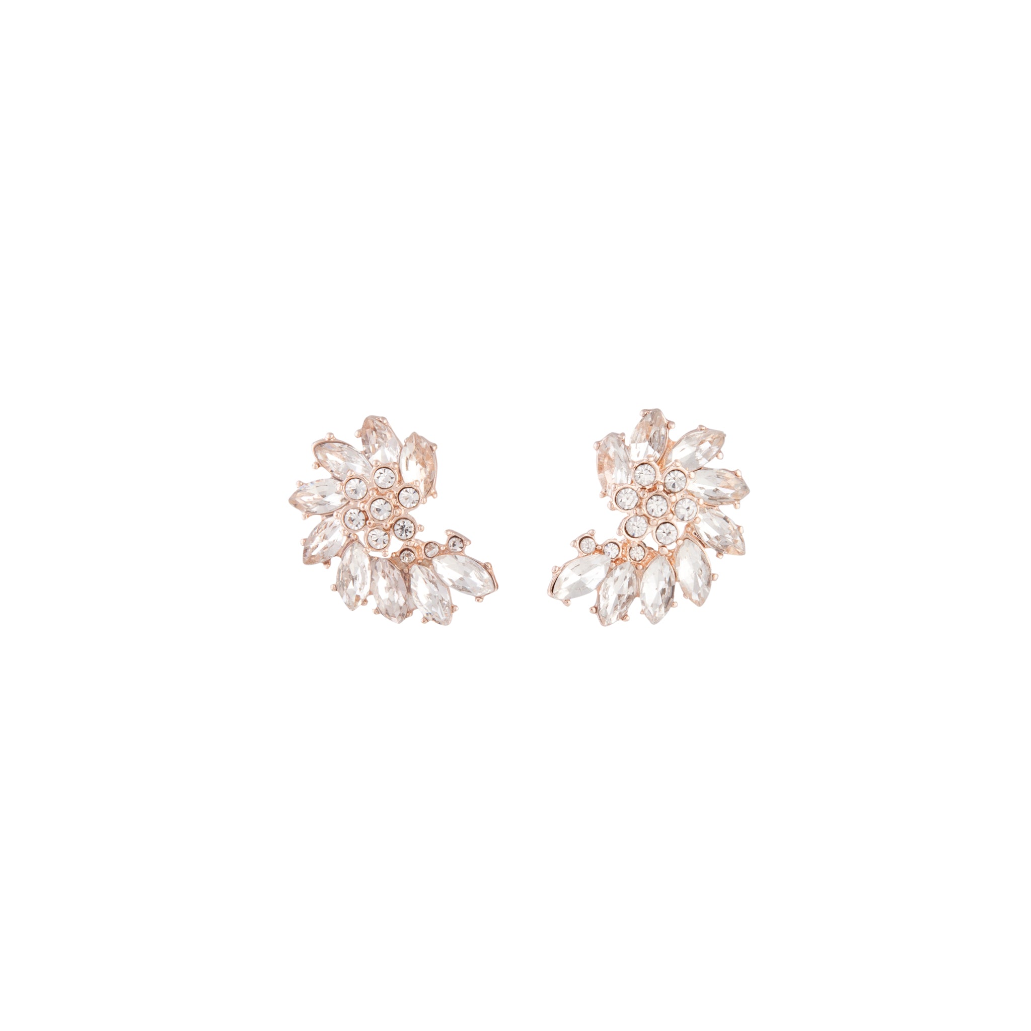 Rose Gold Crystal Marquise Half Moon Stud Earrings