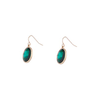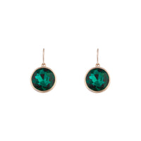 A pair of gold-toned circular earrings with a green embellishment at their centre.