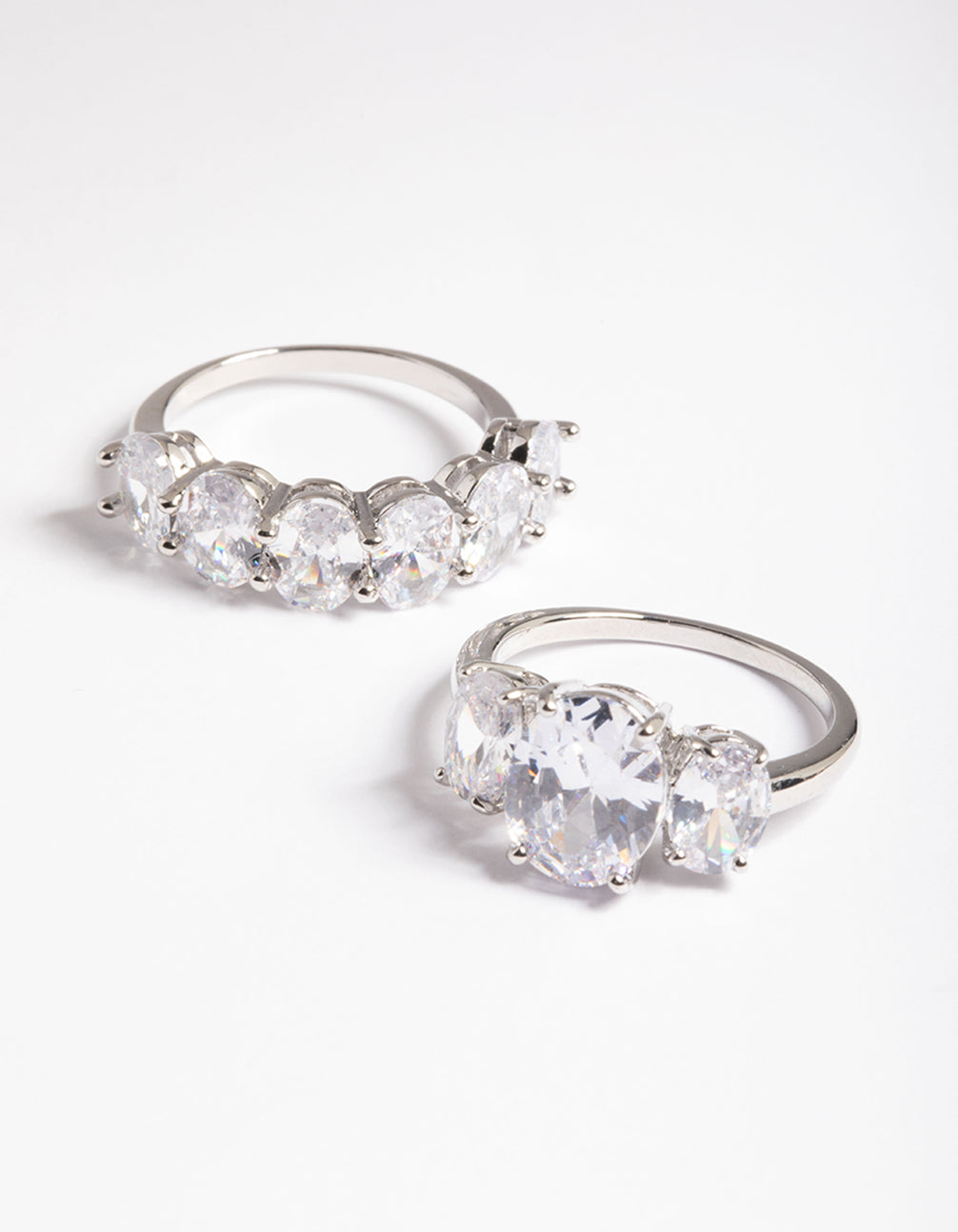 Silver Cubic Zirconia Statement Oval Ring Pack
