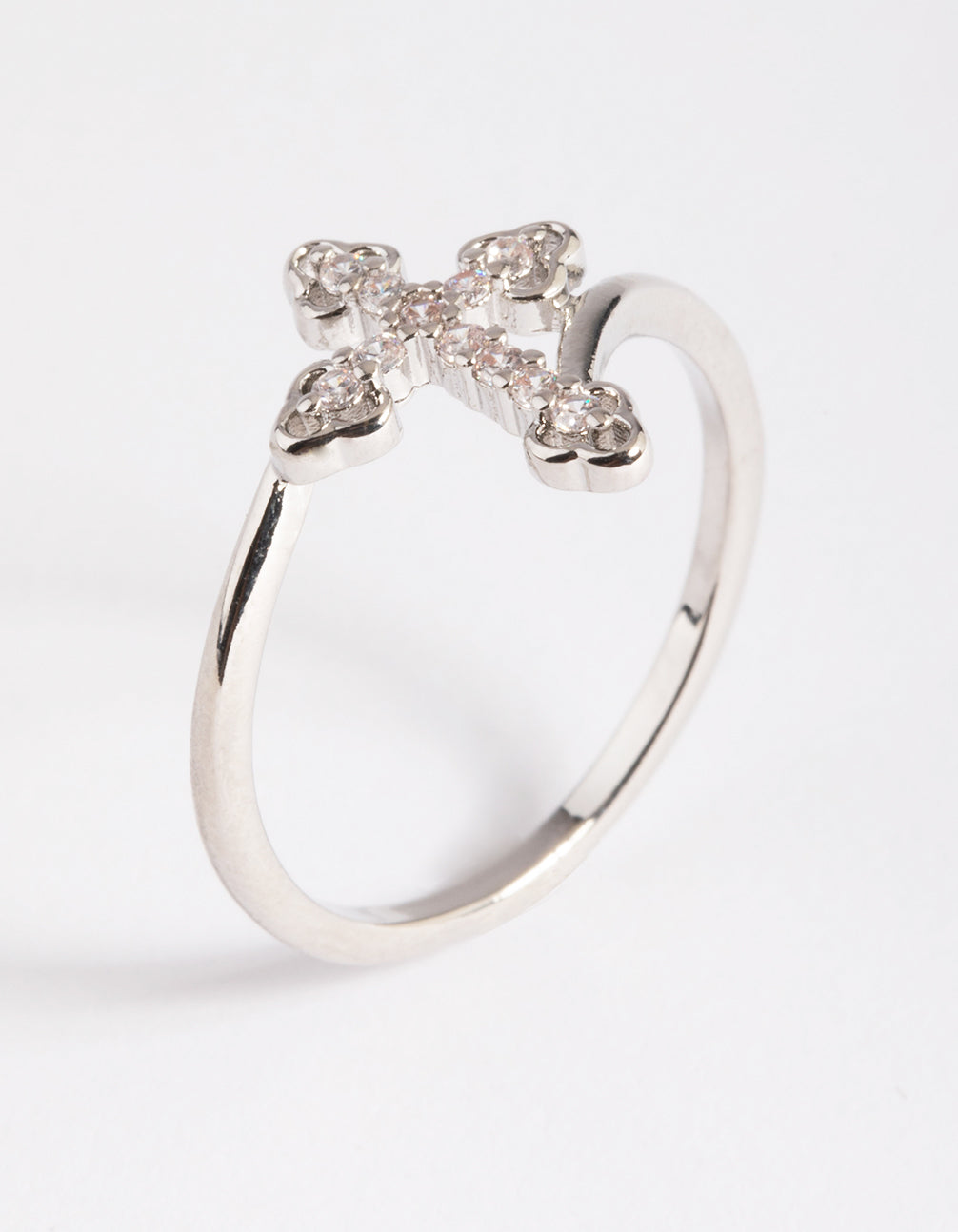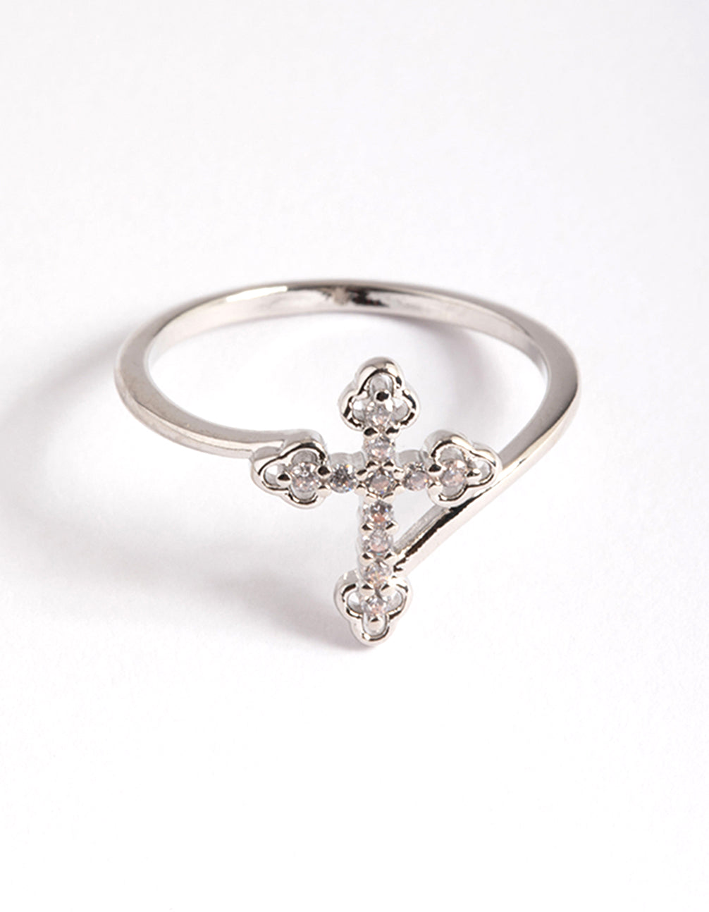 Silver Cubic Zirconia Cross Ring