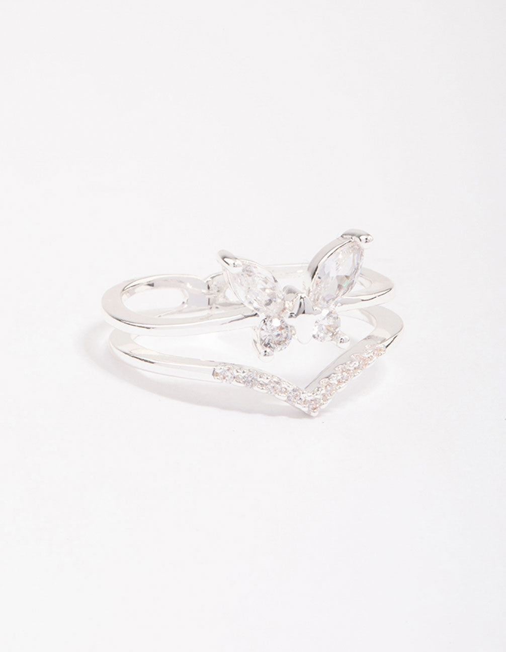 Silver Plated Cubic Zirconia Butterfly Double Band Ring