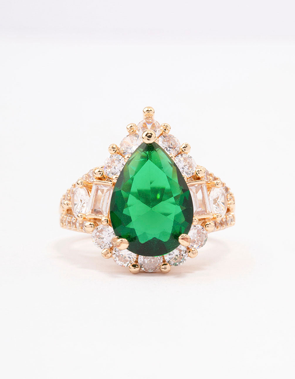 - Pair this Green Grand Pear Cocktail Ring with matching accessories from our Cubic Zirconia Collection for the ultimate evening look.