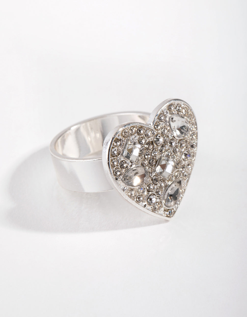 Silver Diamante Heart Sheild Ring